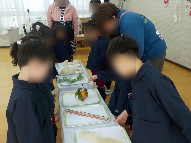 「お正月にお餅食べたよ」「お餅開けた!」と日本の伝統行事への関心を高めていました。