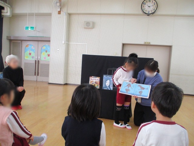 地域の方の絵本の世界に入ってワクワクしながらお話を聞いたり、様々な視点から感じたことをみんなの前で発表したりする姿が見られました。