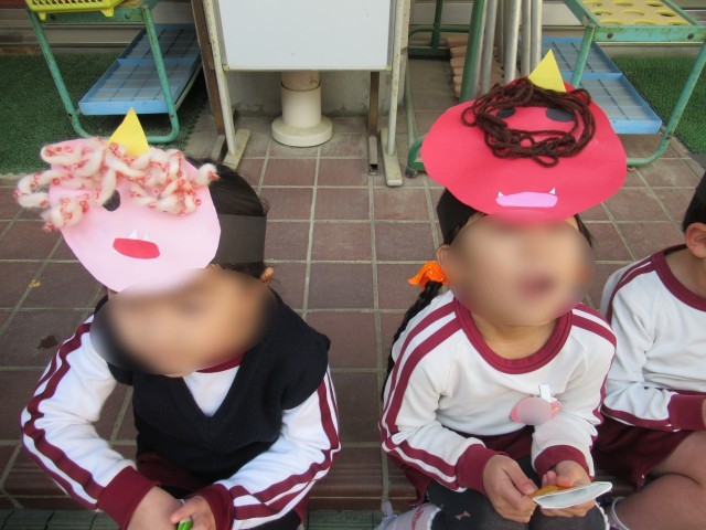 子どもたちの中にいる弱い気持ちが出ていくように大きな声で、『鬼は外!!』『福は内!!』と言い、豆まきをしましたよ。たくさんの福が幼稚園にきますように…