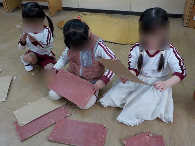 もうすぐ進級するさくら組の子どもたちは、みんなで遊んだものをお片付けしています。