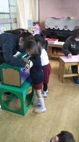 あやめ組がくらーくした遊戯室でなにやら話し合いをしていました。それぞれ意見を出し...