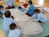 生活発表会に向けて「魔女の宅急便」のお話遊びを楽しんでいるあやめ組の子どもたち...