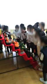あやめ組がおひなさまを飾っています。写真わみながらどこに飾るのか確認…。「ここか...