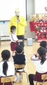 もうすぐ小学校に行くあやめ組さんに安パトさんが「通学路における安全啓発」のお話を...