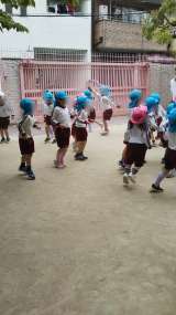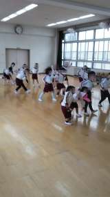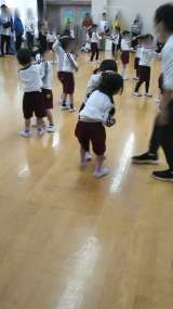 遊戯室で、みんなで体操や仲良し遊びをしました。みんな元気一杯体をのびのび動かして...