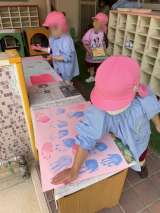 さくら組がのりを使って、こいのぼりに模様を貼っていました。みんなとても丁寧にはっ...