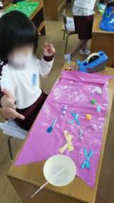 あやめ組はかラーポリ袋を使ってこいのぼりづくりをしていました。 リボンやスプーン...