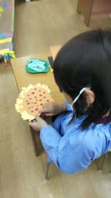 今日はあやめ組がひまわりを作っていました。丁寧に一枚一枚の花びらを作っていました...
