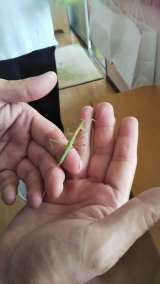 園で育てていたバッタさん。最後の1匹になってしまいました。暑さでか餌の葉っぱもす...