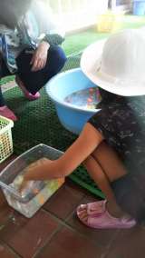 スーパーボールを使ってパフェや金魚の水槽ができました。とっても涼しげ♪