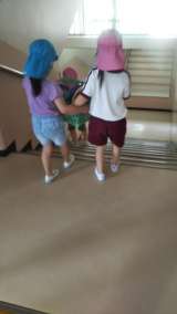 今日は預かりのこどもたちがプールの片付けを手伝っていました。 道具を運んだり、浮...