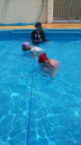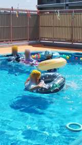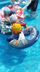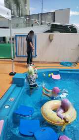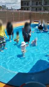 未就園のお友達のプール開放。浮き輪やボールなどでおうちの人と一緒に遊びました。た...
