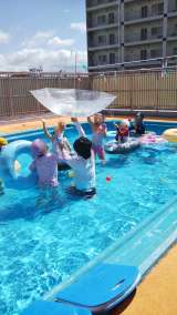 今日もとてもプール日和!プール開放で存分に遊びました。水をかけたり、玉入れをした...