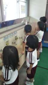 ごはんのあと、みんなで歯みがきをしていました。音楽にもすっかり馴染んで鼻歌まじり...
