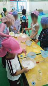 今日のくまちゃんは屋上で水遊び。子どもたちは石鹸の泡作りに夢中になっていました♪...