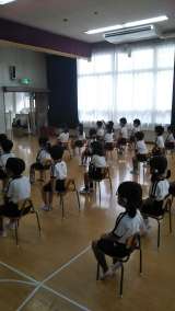 始業式ではみんな落ち着いて話を聞いていました。みんな静かに姿勢よく座っていて一回...