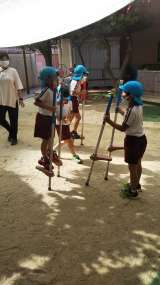 朝から元気いっぱい遊んでいます。竹馬も下駄も久しぶりだけど…ばっちり!