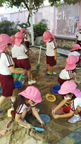 今日は、さくら組がほとんど砂場に集中!心地良い木陰の下で楽しそうですね♪