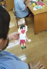 あやめ組が紙で人形作りをしています。髪の毛や、指など細かいところまで意識して丁寧...