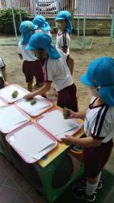 園庭のブドウができました!ちょっと高い場所なので、主事さんが収穫してくださいまし...