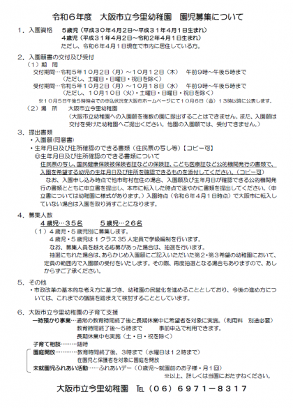 大阪市立幼稚園園児募集