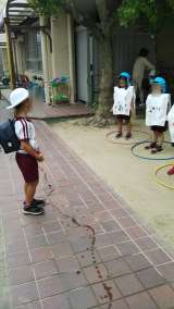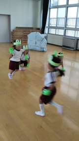今日は小学校でさくら組がかわいいカエルに変身!広い場所で体をいっぱい動かして遊び...