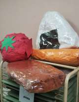 さくら組がみんなで何かを製作中。 大きなおにぎりや、トマト、ブロッコリー…?他に...