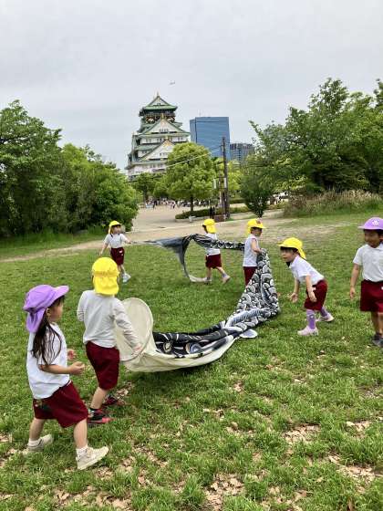 「こいのぼりさんも大阪城見て喜んでるなー!」