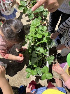 ようこそ!ひよこランドへ^ ^ 公開日 2024/05/14 更新日 2024/05/14 ひよこランド 今年度初めての未就園児園庭開放「ひよこランド」を開催しました。 地域の小さいお友達や近隣の保育園の1・2歳児のお友達が遊びにきてくれました。今日は4歳児きく組が一緒に遊びました。水遊び・シャボン玉・みんなで体操1.2.3^ ^ 帰りには真っ赤なイチゴのおすそ分け。次回は5月28日です! いいね(0)