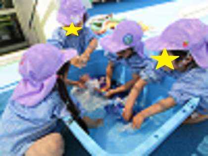 先週こいのぼりを片付けるのに、みんなで洗濯をしました。「次のふじ組、きく組、もも組のために綺麗に洗濯しよう!」「次こいのぼりがあがるのは、1年生になったときや」と話しながら手でゴシゴシと洗いました。洗った後は、プールがある屋上に干して乾かしました。次は何を洗濯しょうかな…楽しみです。