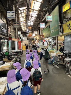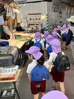 鶴橋幼稚園へ1 公開日 2024/05/16 更新日 2024/05/16 ふじぐみ 5歳児ふじ組は鶴橋幼稚園へ遊びに行きます! 商店街は朝の準備をしているお店がいっぱい。「行ってらっしゃい」と声をかけてもらい、嬉しい気持ちで歩いています。 いいね(0)