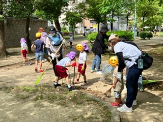 今日は東小橋小学校4年生も一緒に活動しましたよ^ ^じょうずにほうきや熊手を使っている姿を見て「すごーい!」と目を丸くしていた子ども達。みんなもきっとじょうずに使えるようになるよ!