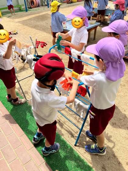 使った軍手を洗濯して、自分達で干しました。明日は4歳児きく組の公園清掃があります。