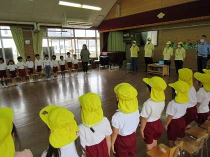 5月27日(月)に東成区安全パトロールの方に交通安全指導をしていただきました。