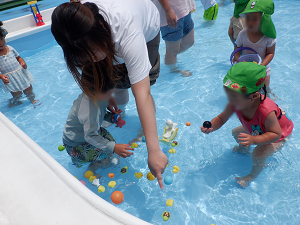 今日はひよこランドのお友達がプール遊びにやってきました♪