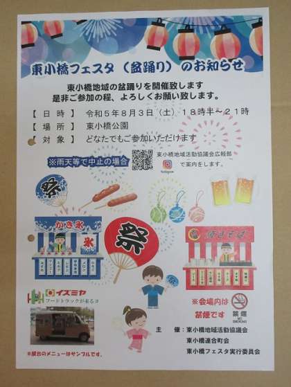 東小橋フェスタ(盆踊り)のお知らせ