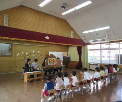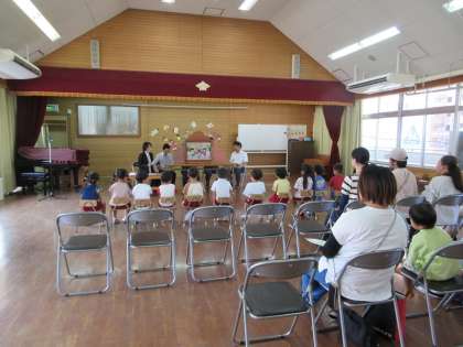 幼稚園の近隣の東成税務署の方が来られて、税金の紙芝居をしていただきました。子どもたちと保護者の方も参加していただきました。
