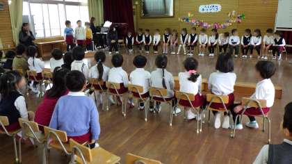今日は、ふじ組さんとのお別れ会。きく組・もも組がお部屋を飾り付けて、ふじ組さんを招待しました。