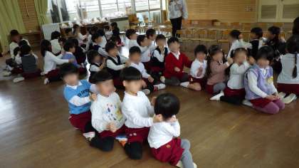 今日は、お弁当も一緒に食べて、食後も一緒に遊びました。あと6回しか幼稚園に来ないふじ組さんと、もうちょっと!もうちょっと!と時間ギリギリまで遊びました。