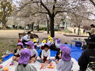 ちょうど、4.5歳児のお弁当始めの日だったので、お花見弁当をしよう!と公園に出かけました^ ^