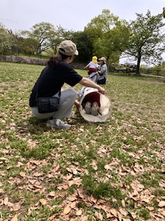 天守閣前の広場で鯉のぼりさんと遊びました。