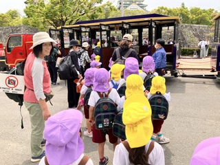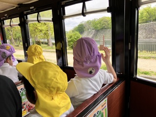 大阪城4 公開日 2025/04/22 更新日 2025/04/22 行事 帰りはロードトレインに乗ってます! 公園の中を気持ちよく進みます。「バイバーイ」とみんなが手を振ってくれて嬉しい気持ちいっぱいの子ども達です^ ^ いいね(0)