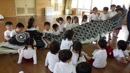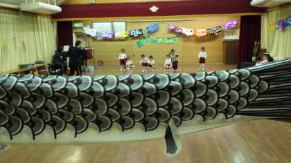 幼稚園のお友達みんながリズム室に集まり、こどもの日の集いに参加しました。