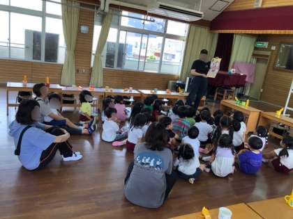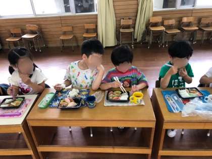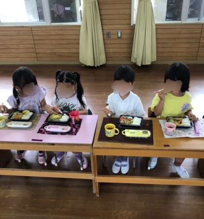 初めてのハッピー弁当!(もも組・ふじ組) 公開日 2025/06/12 更新日 2025/06/12 異年齢 今日から、もも組さんもハッピー弁当が始まりました! ふじ組さんと一緒に「これおいしいね」と話しながらもぐもぐお弁当を食べました。 お弁当箱を片付けた後は、養護教諭が歯磨きの絵本を読み聞かせました。 絵本をみた後、ピカピカ真っ白な歯になるよう一生懸命歯磨きしました! いいね(0)