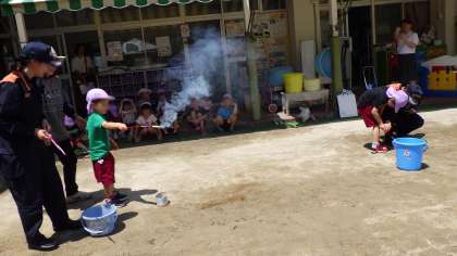 今日は、消防署からおもちゃ花火講習会に来てくださいました。