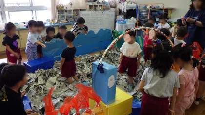 実際にやってみるといろいろ問題が出てきて、ひとつひとつ先生やお友達と一緒に相談して対策を考えました。これなら小さいお友達も楽しめるかな。