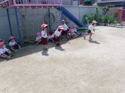 よーいどん!のかけ声に、お友達と一生懸命に走って大興奮なもも組さんでした!