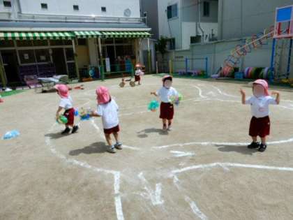「いってらっしゃ〜い」と送り出した後は…園庭を使い放題♪