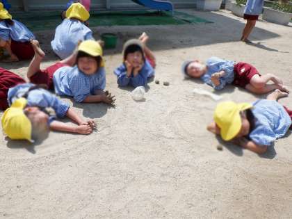 きく組は日陰と日向の違いに気付き「こっちの土があったかい〜♪」と日向ぼっこを楽しんでいる子たちもいました。