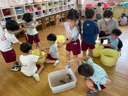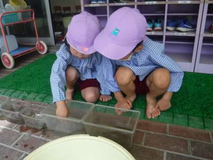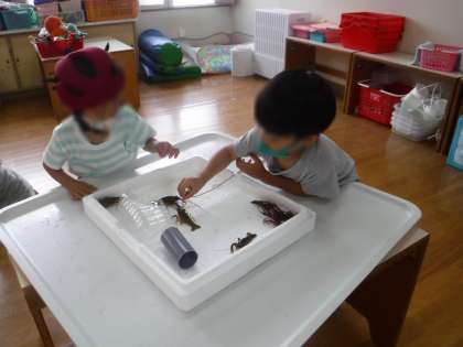 強そうなはさみに驚いたり、そーっと持ち上げてみたりザリガニと楽しくかかわりました。
